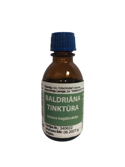 Sastāvdaļas: baldriāna saknes un sakneņu tinktūra 1:5, etilspirts.  Alc. 65 tilp. %.