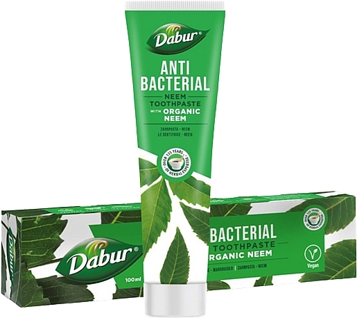 Dabur Neem zobu pasta ar organisko nīmu ir unikāls dabas smalku daļiņu un spēcīgāko sastāvdaļu, piemēram, nīma, dabīgā, kalcija un Lotur mizas, maisījums. Nīmam piemīt antibakteriālas īpašības, un tas ir plaši zināms, ka tas aizsargā pret baktērijām. Zobu pasta ar organisko nīmu ir paredzēta, lai aizsargātu jūsu zobus pret smaku izraisošām baktērijām un palīdzētu veicināt smaganu veselību un stiprākus zobus.